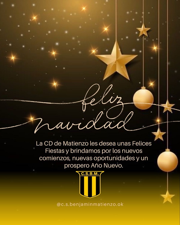 La comisión directiva del Club señala: Desea Felices Fiestas, brindamos por los nuevos comienzos, nuevas oportunidades y un próspero Año Nuevo