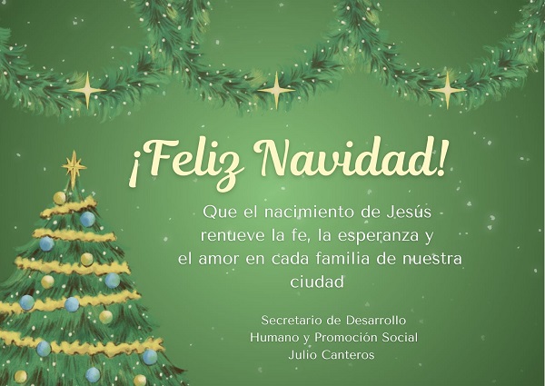 Como expresión de buenos augurios, para las Fiestas la Secretaria señala: Que el espíritu navideño renueve la esperanza, fortalezca los lazos y nos impulse a seguir creciendo juntos por una ciudad productiva y en constante crecimiento.