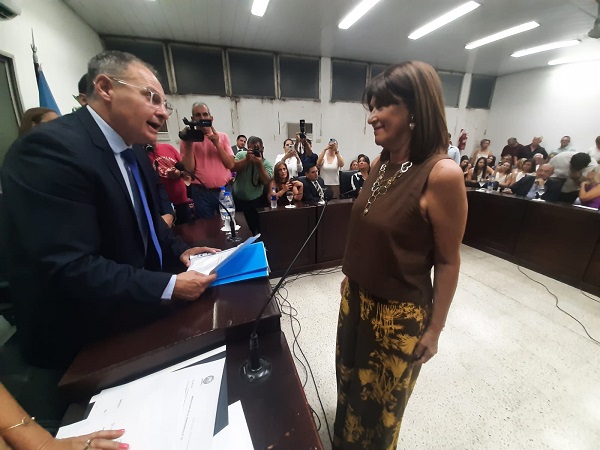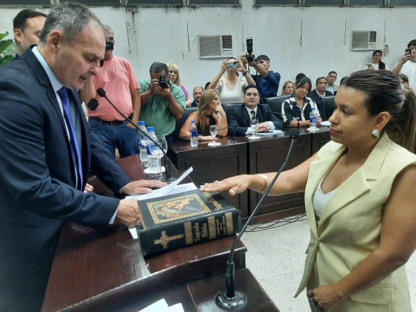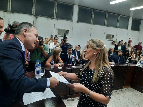 Después se procedió a la jura de las nuevas autoridades del Concejo. Primero Vivian Merlo tomó juramento a Frattini y luego el reelecto Vicepresidente 1° hizo lo propio con Merlo.