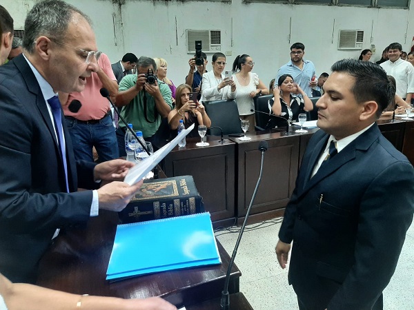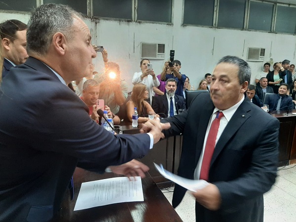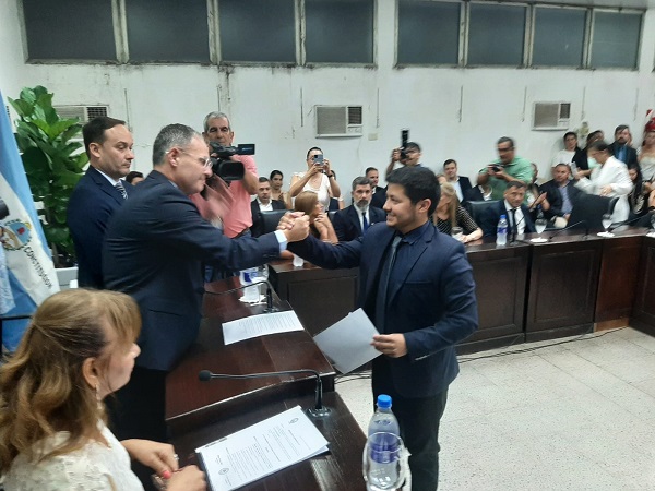 Ambos juraron por la formula “por Dios, la patria y estos santos evangelios”, desempeñar fiel y lealmente el cargo para el que habéis sido electos, respetar y hacer respetar la Carta Orgánica Municipal”. Tras el “Sí, juro”, el recinto estallo en aplausos como había ocurrido antes con la jura de los concejale electos.