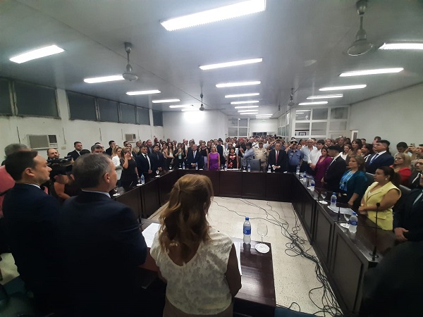 Se produjo entonces un breve paréntesis para que se ubiquen en sus bancas los nuevos concejales, ocupando cada uno de ellos los sitios que dejaron los salientes.