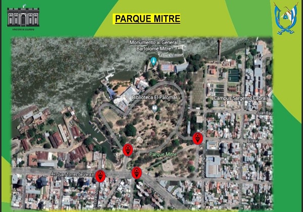 También, se tiene previsto un cerramiento parcial en la zona del Parque Mitre y se reforzará la seguridad perimetral, Plaza Vera, Parque Camba Cuá, Rotonda Poncho Verde, Plaza del Bicentenario y Plaza del Mercosur y demás espacios públicos.