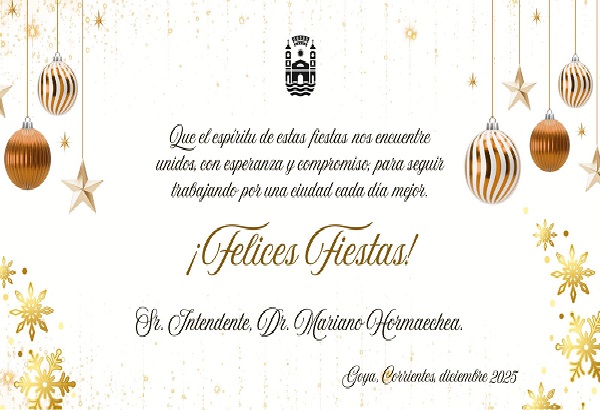 Ante la proximidad de la celebración que convoca al encuentro familiar, con amigos, los afectos, la Navidad, el Intendente Municipal Mariano Hormaechea, hace llegar sus buenos augurios, expresando: “Que el Espíritu de estas fiestas nos encuentre unidos, con esperanza y compromiso; para seguir trabajando por una ciudad cada día mejor.