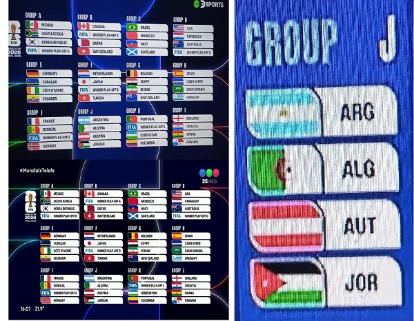 Corrientes SORTEO DEL MUNDIAL: A LA ARGENTINA LE CORRESPONDE EL GRUPO “J” CON ARGELIA, AUSTRIA Y JORDANIA Por Raul Nicolas Lauria - 5 diciembre, 2025 0 3 FacebookTwitterPinterestWhatsApp Agradezco muchisimo la generosidad de la Policía de Corrientes que muy gentilmente ha compartido con nosotros la presente información del resultado del sorteo en el día de hoy la ubicación y grupo que quedó la Argentina.
