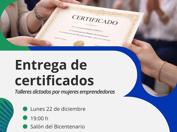 El próximo lunes 22 de diciembre se hará el acto de entrega de los certificados correspondientes.