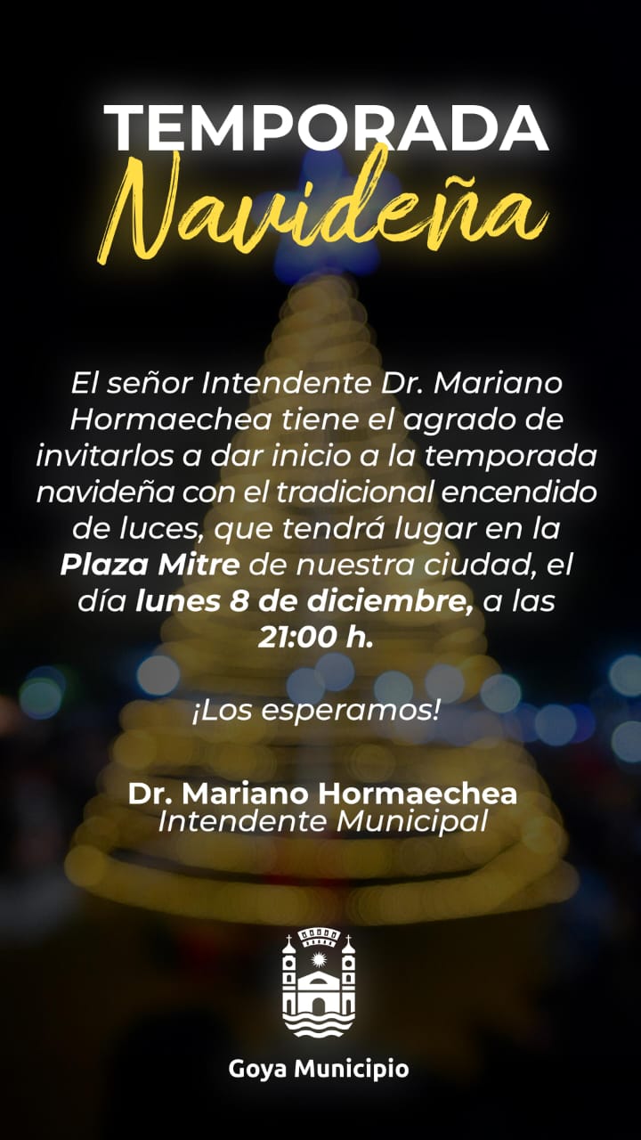Locales TEMPORADA NAVIDEÑA: El INTENDENTE MUNICIPAL MARIANO HORMAECHEA INVITA A LOS VECINOS, A LA COMUNIDAD TODA AL INICIO DE LA TEMPORADA NAVIDEÑA Por Raul Nicolas Lauria - 7 diciembre, 2025 0 3 FacebookTwitterPinterestWhatsApp En la invitación el Jefe Comunal convoca al tradicional encendido de luces, el lunes 8 a las 21 horas, en Plaza Mitre. Los esperamos.
