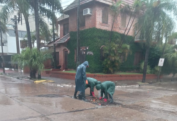 Operarios del PRODEGO realizan tareas de control y operación de las estaciones, además equipos de cuadrillas limpian bocas de tormenta y desobstruyen canales.