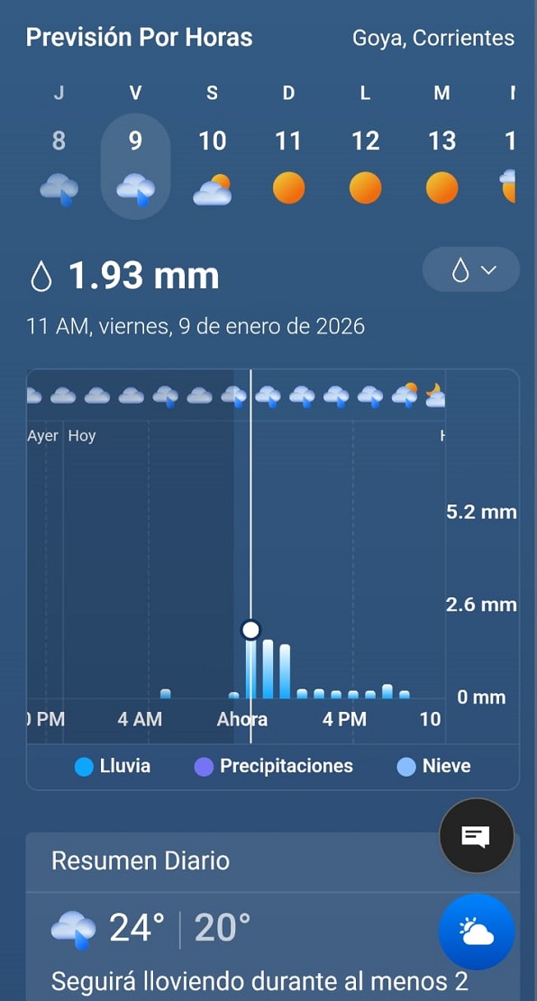 Goya Ciudad: Actualización datos precipitaciones, 100 mm hasta las 12:00 Hs