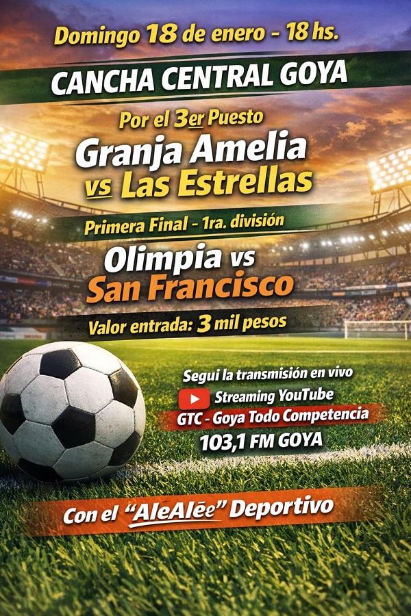 El domingo 18 en el Estadio “Pedro Celestino Lopez” del Club Central Goya se disputará el primer partido final entre los equipos de Olimpia de San José El Bajo y San Francisco de la 1ª Sección Goya