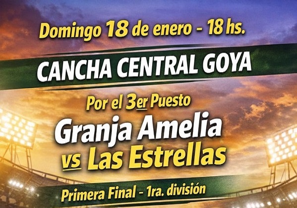 Previo a la primera serie final, los clubes Las Estrellas de Manantiales y Defensores de Granja Amelia disputarán el partido que definirá al 3º puesto del mencionado torneo organizado por la Asociación Cultural y Deportiva Rural