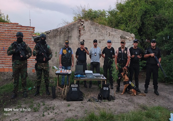 El procedimiento se llevó a cabo en un domicilio ubicado en el Paraje Vaca Paso de la localidad de Perugorria Departamento Curuzú Cuatiá, lugar donde se halló y secuestro diversos elementos de interés para la causa, entre ellos: 11 notebooks de distintas marcas, 04 cargadores de notebooks, 19 teléfonos celulares, 03 pendrives, 03 tarjetas SIM, 01 cuaderno con anotaciones varias, 02 balanzas, 21 paquetes de papel de celulosa, 01 picadora, 01 envoltorio de nylon con semillas en su interior y múltiples envoltorios similares, 02 plantas y 02 tallos con hojas presumiblemente de cannabis sativa, 03 cartuchos de escopeta calibre 14 mm -marca Orbea- y dinero en efectivo, además también en la oportunidad por no justificar su procedencia ni acreditar la propiedad se secuestró 15 garrafas de gas, 02 motocicletas y 01 cuadro de motocicleta.