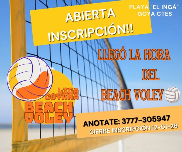 El torneo comenzará el 16 de enero, y las inscripciones se pueden realizar a través del número de WhatsApp 3777-305497, o a través del Instagram de la Liga de Beach: @LIGAGOYANABEACHVOLEY; hasta este lunes 12 de enero.