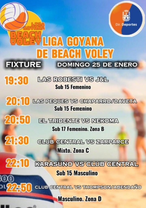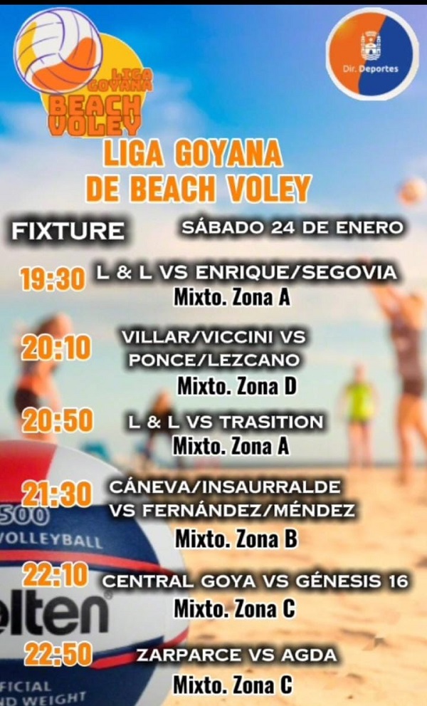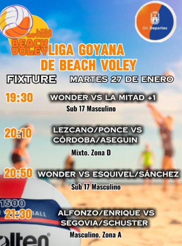Desde este jueves 22 proseguirá la disputa del campeonato de Vóley Playa, organizado por la Liga Goyana de este deporte, con el acompañamiento de la Municipalidad desde la Dirección de Deportes.