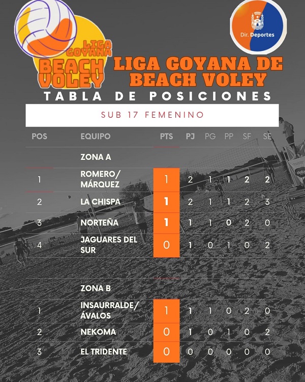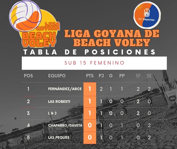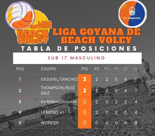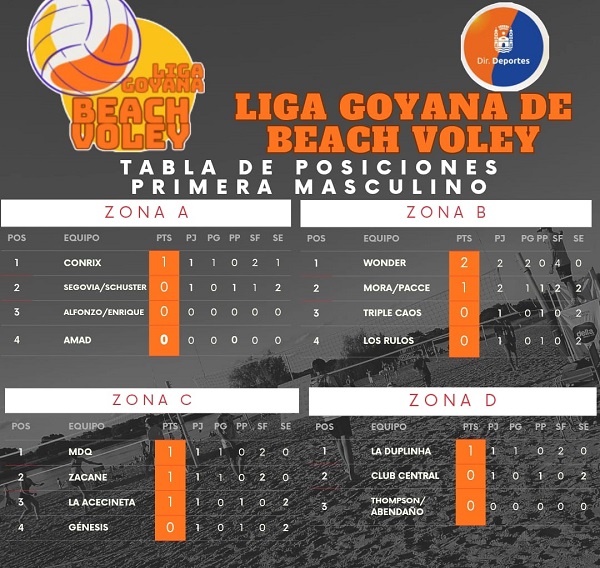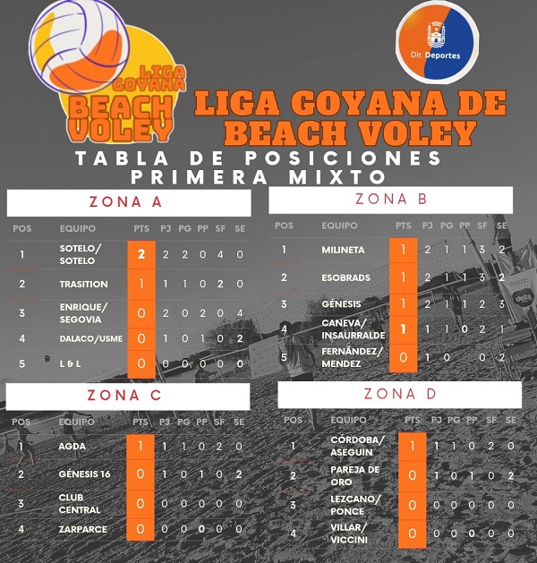 Tras disputarse durante el fin de semana la primera fecha del torneo de Beach Vóley, así quedaron las posiciones en las respectivas categorías: