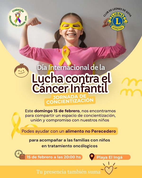 Impulsada desde la Fundación Onco Infanto Juvenil Goya, este domingo 15 de febrero desde las 20 horas en Playa El Ingá, se invita a la comunidad a participar de la jornada solidaria y de concientización a realizarse en ese espacio público de la ciudad