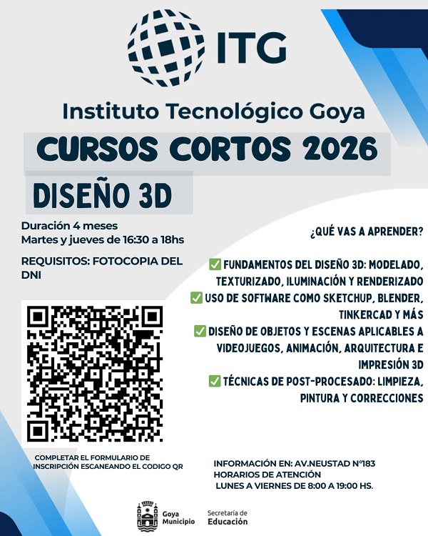El Instituto Tecnológico Goya mantiene abierta la inscripción para este curso de 4 meses de duración a dictarse los días martes y jueves de 16,30 a 18 horas.