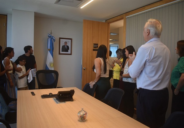 al salón de reuniones del instituto, un espacio emblemático donde se desarrollan habitualmente encuentros de trabajo y decisiones institucionales. El gesto simboliza el reconocimiento a su trayectoria, al afecto construido con los trabajadores y a un legado que, según coincidieron los presentes, trascendió lo estrictamente administrativo.