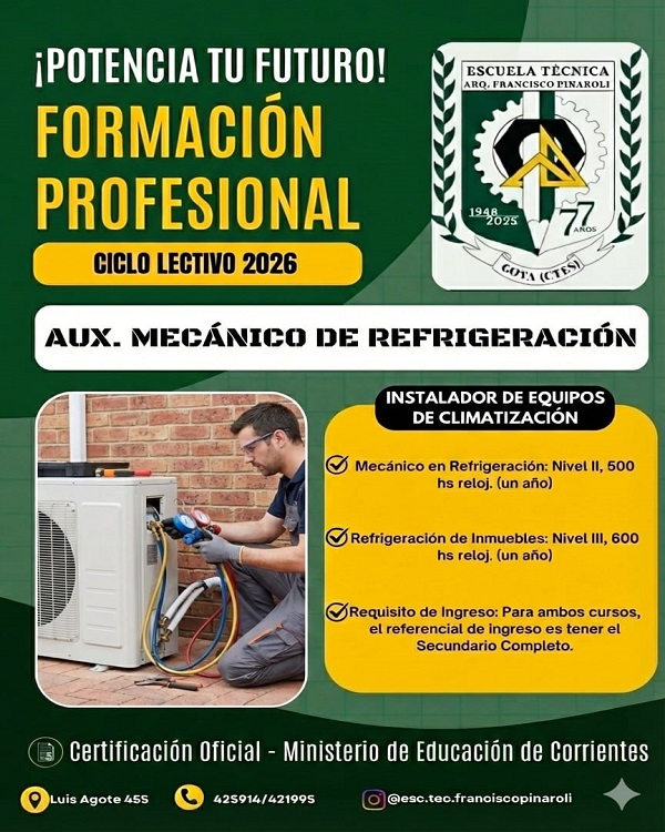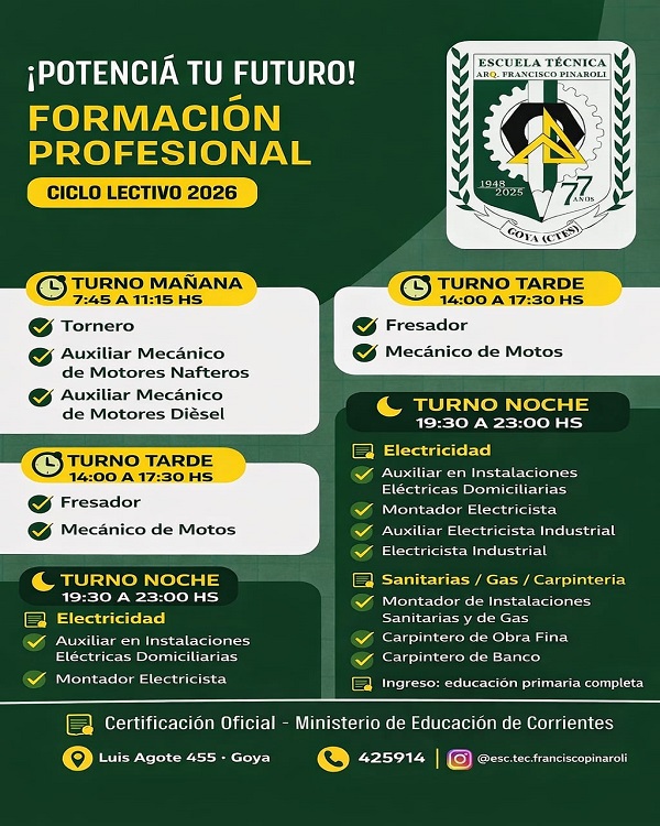 La Escuela Técnica Arq. Francisco Pinaroli informa que se encuentra abierta la inscripción