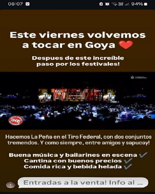 tradicional, y el grupo goyano N’derekó con una propuesta folklórica y chamamecera.