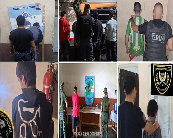 El primer procedimiento fue concretado por los efectivos del -G.R.I.M. I- en inmediaciones de las calles Pago Largo entre Belgrano y Mariano Moreno, donde visualizaron e identificaron a cuatro jóvenes de 19,20,21, y 22 años de edad, quienes no supieron justificar su presencia ni accionar en la zona, siendo posteriormente demorados.