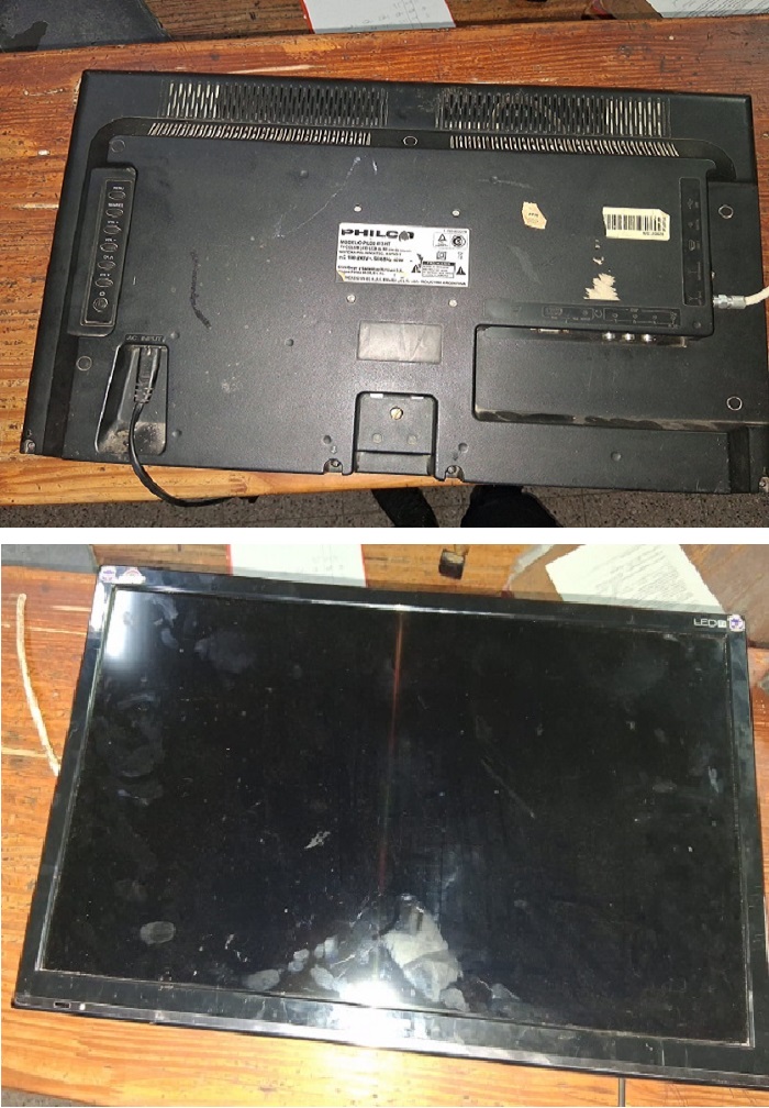 De igual forma, alrededor de las 01:30 horas, el G.R.I.M. II, divisaron e identificaron por calles Cuba y Nº 9, a un hombre de 29 años de edad, quien en su poder llevaba un TV Led – marca Philco, de 24”- la cual no supo justificar su propiedad o procedencia, procediendo al secuestro de la misma y a la demora del mismo.