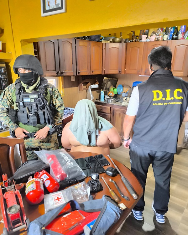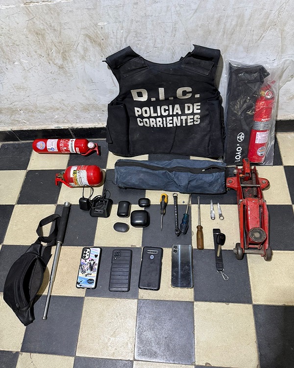Por lo que se concretó hoy un allanamiento ocurrido en la jornada de hoy en horas de la mañana en una vivienda de calle Tafy del Valle y Pedro Crespo del Barrio Rio Paraná, lugar de donde secuestraron varios kits de seguridad de automóviles (matafuegos, gato hidráulico) una riñonera de cuero, auriculares bluetooth, varios teléfonos celulares de origen dudoso, una base de cargador de radio frecuencia (utilizado para inhibidores de señal de alarmas) ganzúas, y otras herramientas utilizadas para aperturas de puertas y un automóvil marca Honda City, la cual sería el medio de movilidad para cometer los ilícitos.