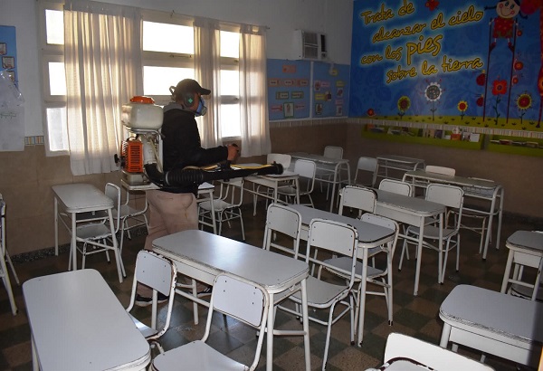 Otra de las acciones que implementa la gestión municipal, es la colaboración que brinda en la fumigación en instituciones escolares y colegios.