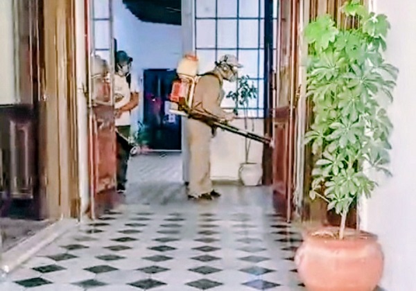 El personal de Bromatología Municipal procedió a fumigar ambos lugares con el equipamiento correspondiente, elementos y productos usados frecuentemente para la concreción de esa tarea.