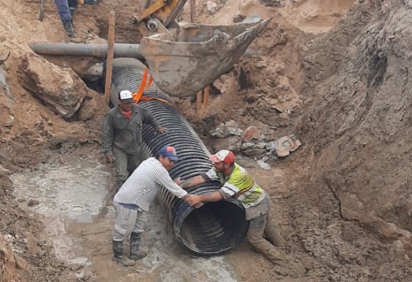 Desde el pasado martes se dio inicio a la colocación de caños de polietileno de alta densidad de 800 milímetros de diámetro, tarea que se desarrolla a buen ritmo gracias al acompañamiento de condiciones climáticas