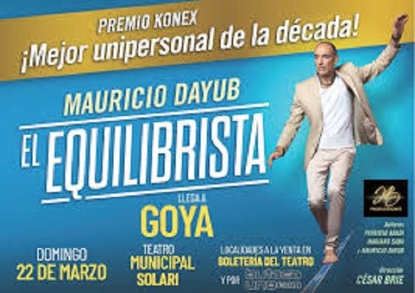 El reconocido actor argentino Mauricio Dayub se prepara para desembarcar en el Teatro Municipal de Goya el próximo 22 de marzo con su multipremiado unipersonal “El Equilibrista”.
