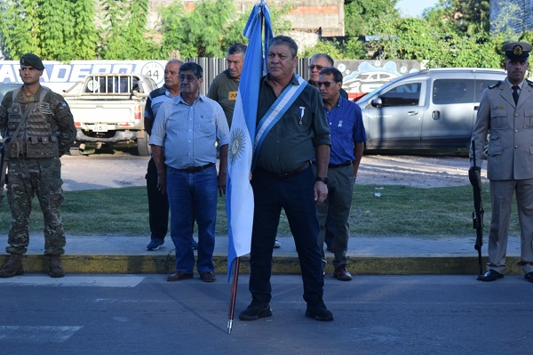Uno de los momentos iniciales fue el izamiento del Pabellón Nacional, a cargo del intendente Hormaechea, el titular de los ex combatientes Roque Zabala y el jefe del Batallón de Ingenieros de Monte 12 teniente coronel Sergio Fabián Ortiz. La bandera argentina, elevada en lo alto, se erigió como símbolo de memoria, soberanía y unidad nacional.