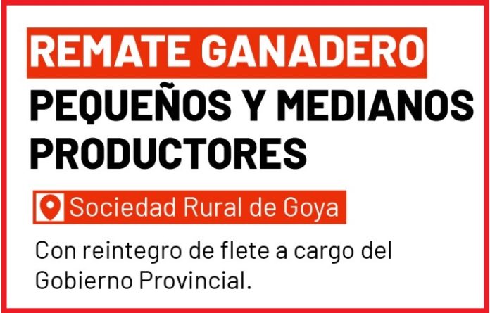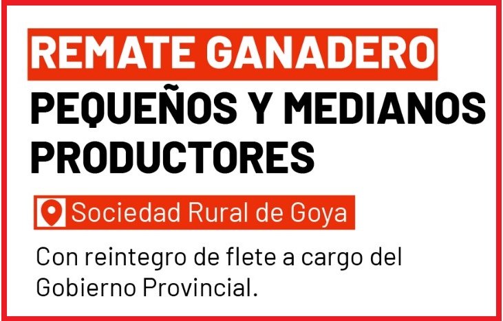 y consultas para participar del Remate Ganadero para Pequeños y Medianos Productores, que tendrá lugar en la Sociedad Rural de Goya el próximo 21 de mayo. El Gobierno de la Provincia, a través del Idercor, reintegrará lo correspondiente al flete. Comunicarse a la oficina de Producción del IPT de lunes a viernes al 03777 – 643937.-