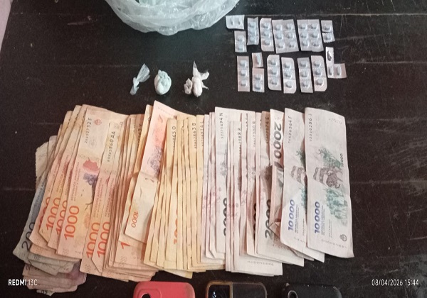P.A.R., diligenciaron una orden de allanamiento en un domicilio ubicado en el barrio Pio X, lugar donde lograron hallar y secuestrar dinero en efectivo, 04 teléfonos celulares, 03 envoltorios de polietileno con sustancia blanquecina (cocaína), recortes, 01 balanza de precisión, 01 arma de fuego de fabricación casera (tumbera), cartuchos -calibre .22- y varias pastillas presuntamente -alprazolam-.