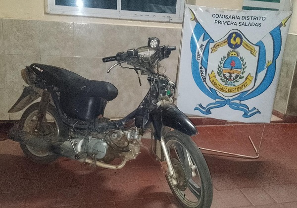 En la jornada de ayer 02-04-26, efectivos policiales de la Comisaría de Distrito Primera de Saladas junto a sus pares de otras dependencias dependientes de la Unidad Regional VII°, implementando diversos controles vehiculares e identificación de personas, secuestraron una motocicleta que se hallaba denunciada como sustraída.