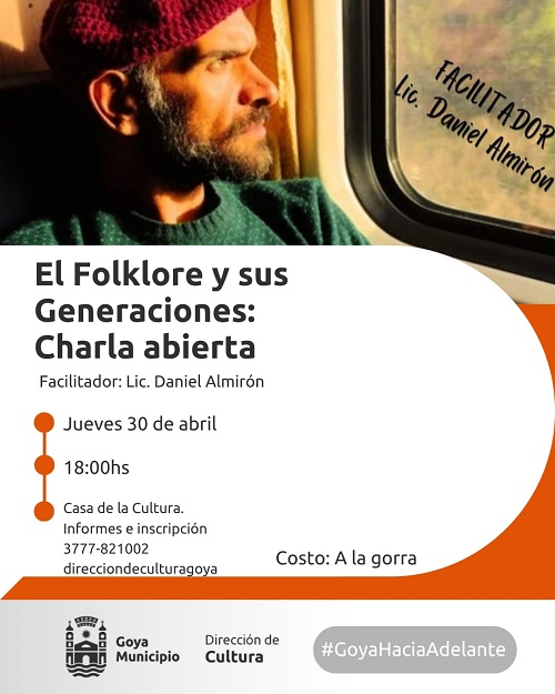 El folclore y sus generaciones: Charla abierta, el 30 de abril en la Casa de la Cultura, con la modalidad “a la gorra”.