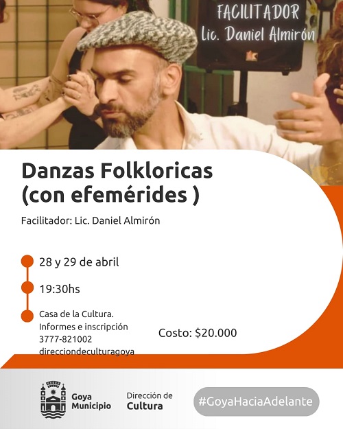 La gestión municipal propone desde la Dirección de Cultura espacios de formación y charla abierta sobre la danza folclórica y el folclore y sus generaciones. Están previstos para los días 28, 29 y 30 de abril.