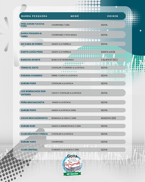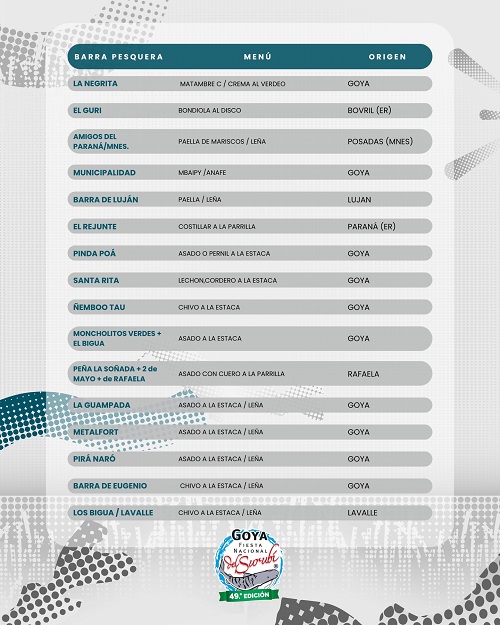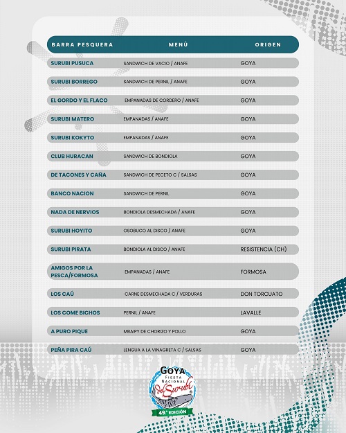 Más de 50 barras cocinarán para los pescadores y el público. A continuación, se detalla el listado de los menús.
