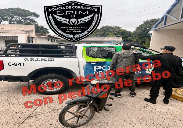 G.R.I.M. 3 – Tras eficaz accionar, la Policía demoró a un hombre y secuestró una motocicleta denunciada como sustraída.
