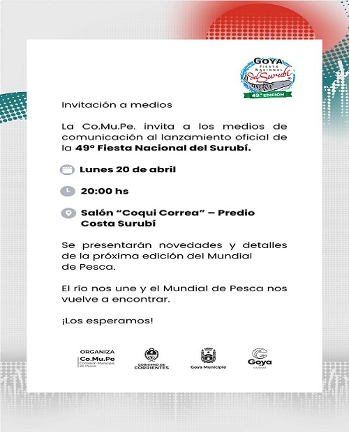 La Co.Mu.Pe. invita a los medios de comunicación al lanzamiento oficial de la 49° Fiesta Nacional del Surubí.