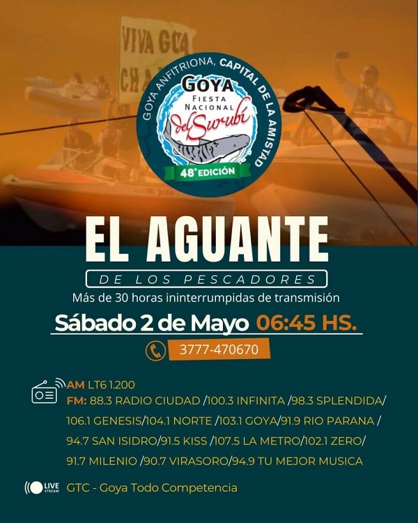 El equipo contará con la participación de César Perrotta, “uno de los que nos motiva a llevar adelante esto”, y reconoció el trabajo de Yiyi Lacava Vilas en la producción y el armado técnico, así como a los operadores Mario Alejandro Velázquez, Miguel González y Hugo Parra. “Este año incorporamos a la producción, el streaming, y ahí está una cadena de radios que se suman porque quieren ser parte de esto, quieren estar junto al pescador. Haciendo base en LT6 en simultáneo estarán Spléndida 98.3, además de 88.9 Radio Con Vos de Corrientes, y tengo que agradecer a Freddy Miranda que también nos acompaña desde ediciones anteriores siendo parte del programa, y este año tomará la señal desde la capital correntina. También estará la 103.1 FM Goya, Tu Mejor Música, 94.9, 88.3 Radio Ciudad, muchos medios y por streaming por el canal de YouTube de Goya Todo Competencias”, repasó Alejandro Medina.
