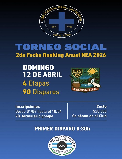 “Este torneo regional es avalado por la Federación Argentina de Tiro Práctico, se hace por primera vez en Goya. En la historia del Tiro Federal de nuestra ciudad, es el único polígono federado, por lo tanto, habilitado para hacer este modo de concurso. En este caso es la 2ª fecha del Ranking del NEA”, destacó.