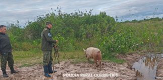 POLICIA DE CORORIENTES (POLICIA RURAL) SECUESTRA UN ANIMAL PORCINO QUE FUERA...