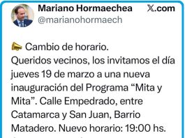 19 horas. MITA Y MITA: NUEVA INAUGURACIÓN DE PAVIMENTO EN BARRIO MATADERO