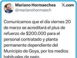 INTENDENTE MARIANO HORMAECHEA ANUNCIÓ EL PAGO DEL PLUS DE $200.000